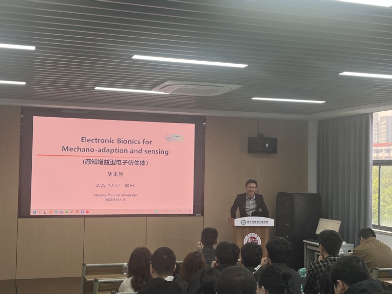 10月27日下午,医学与健康工程学院在敏行楼315报告厅举办华罗庚学术沙龙系列讲座(第二讲),南京医科大学生物医学工程与信息学院副院长胡本慧教授应邀为学院师生作题为《感知增益型电子仿生体》的主题讲座。 胡本慧教授是南京医科大学教授、博士生导师、天元青年学者,获聘国家重大人才工程青年学者、江苏省杰青、江苏特聘教授、ChemComm (nature index期刊) 新锐科学家。担任中国生物材料学会脑机接口生物材料分会常委,中国医学装备协会组织再生分会常委,卓越期刊the Innovation青年编委,江苏省青年科技工作者协会理事。长期研究共生电子及生物力学实时成像,并建立感知系统构筑近身智能空间,成果以通讯或一作发表在Nature、Nature Electronics等国际高影响力期刊,主持国家自然科学基金面上项目(2项)、江苏省杰出青年基金等多项科研项目,获省部级科研奖项1项。 报告中,胡本慧教授介绍了其团队在电子仿生体领域取得的一系列创新突破。针对现有心脏表面生物接口易引发心室重构导致失效的难题,团队受自然界蜘蛛丝多级结构启发,率先构建了由内源环境驱动、可在活体心脏表面原位形成的适形生物接口。这一机制颠覆了传统湿润器官接口需器官停跳或易“潮致脱离”的技术路径,转向内源分子直接驱动的“主动包裹”新模式。该材料具备50%的高收缩率和收缩后仅80 kPa的极低模量,成功实现了在搏动心脏表面的稳固成型与高精度心外膜电信号监测,为心律失常的准确识别提供了全新工具。胡教授还分享了受梅克尔细胞机械感受器启发而提出的离子泵仿生机制。该机制通过离子重分布过程中的熵控效应,将电容式传感器的静态压力检测限显著降低至1帕,并展现出优异的重现性。面对信号采集的功耗挑战,团队还成功设计出一种抵“零”功耗无线电子皮肤,利用无源背向散射通信技术,将通信功耗大幅降至低功耗蓝牙设备的1.39%,同时通信距离远超NFC技术百倍,展现了广阔的临床应用前景。 整场讲座内容翔实、视角前沿,既有深厚的理论探索,又紧密结合实践应用,引发了在场师生的浓厚兴趣与热烈讨论。本次华罗庚学术沙龙活动不仅为学院师生提供了与国内顶尖学者面对面深入交流的宝贵机会,有效拓展了大家的学术视野,也进一步激发了在交叉学科领域的研究热情,对推动学院在生物医学工程及相关前沿方向的创新与发展具有重要意义。(通讯员朱霖霖/审核张继延/编辑王芳)