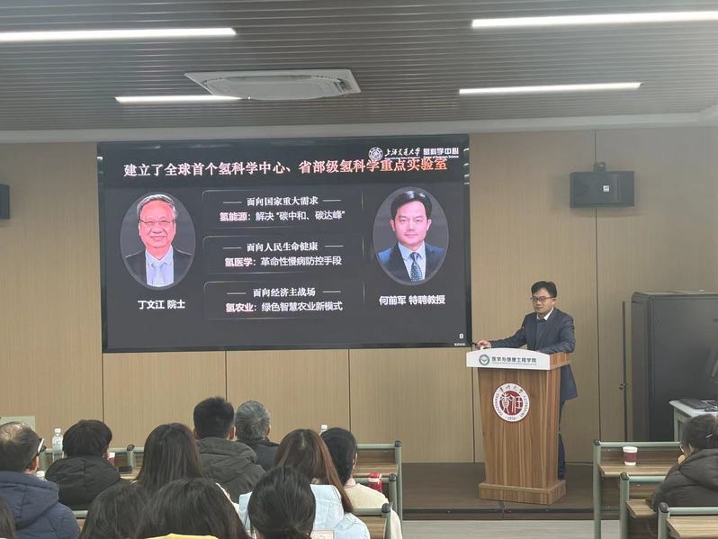 12月5日下午,医学与健康工程学院在敏行楼315报告厅举办华罗庚学术沙龙系列讲座(第六讲),上海交通大学氢科学中心学术带头人何前军教授应邀为学院师生作题为《氢医学材料》的主题讲座。 何前军教授学术造诣深厚,成就斐然。他是国家杰出青年基金获得者、欧盟玛丽居里学者、上海交通大学特聘教授。长期从事纳米生物医用材料研究,开辟了“纳米气体医学”研究领域,发现了氢分子生物学靶点,创制了首例氢分子生物探针,提出了光催化产氢治疗糖尿病足的新疗法和氢分子重塑衰老微环境的新概念。以第一作者和通讯作者在Science Advances、Nature Communications、Cell Biomaterials、JACS、Adv Mater、Angew Chem等国际顶级期刊发表SCI论文100多篇,h指数70,入选“全球高被引科学家”和具有终身影响力的“全球前2%顶尖科学家”。曾荣获全球氢分子研究杰出引领者奖、欧盟玛丽∙居里国际引进人才奖、中国新锐科技人物奖、中科院“卢嘉锡”青年人才奖等奖励。现担任《Medical Gas Research》和《Chemical Synthesis》杂志副主编、国际氢医学与生物学学会主席、中国老年保健医学研究会氢分子生物医学分会副主任委员。 在论坛中,何前军教授深入阐述了氢医学材料的研究现状与发展前景。他指出,氢分子具备广谱抗氧化抗炎效应,在炎症相关的众多重大疾病治疗中展现出明确的生物学效应和较高的生物安全性,氢分子治疗作为一种新兴且极具应用潜力的治疗策略正逐渐崭露头角。然而,当前氢医学发展面临三大关键难题:氢分子治疗的原理尚未完全明晰;体内氢分子的检测技术有待突破;向体内有效递送氢分子的方法亟待创新。针对这些难题,何教授介绍其课题组在原理探究、工具开发、材料应用三个维度展开深入研究,并取得一系列创新性成果。在原理探究方面,成功发现氢分子生物学靶点,揭示了氢分子抗炎、抗癌、抗衰的基本原理;工具开发上,成功研制首例氢分子生物探针,验证了其强大的跨生物屏障能力;材料应用领域,开发出一系列新型氢分子递送医用材料,显著提高氢分子递送效率,并应用于重大疾病治疗研究。此外,何教授还分享了课题组长期聚焦炎症相关难治性疾病的气体医学研究经验,强调通过探究分子靶点,发展创新药物和器械,借助气体分子辅助传统疗法增效减毒,实现难治性疾病的安全、高效治疗。 此次讲座内容丰富、见解独到,为医学与健康工程学院的师生们带来了一场前沿的学术盛宴。讲座结束后,现场师生纷纷就感兴趣的问题与何教授进行深入交流,气氛热烈。通过此次讲座,学院师生对氢医学材料领域有了更全面、更深入的认识,拓宽了学术视野,为今后的科研工作提供了新的思路与方向。(通讯员/朱霖霖 审核/张继延 编辑/王芳)